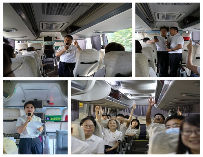 在前往鳳縣革命紀(jì)念館的路途中,嘹亮的紅色歌聲回蕩在群山之間,車廂內(nèi)大家熱情高漲,通過黨史知識問答、紅色歌曲傳唱、紅色詩詞朗誦等互動活動,一同重溫黨的歷史,表達(dá)對黨的熱愛和祝福。